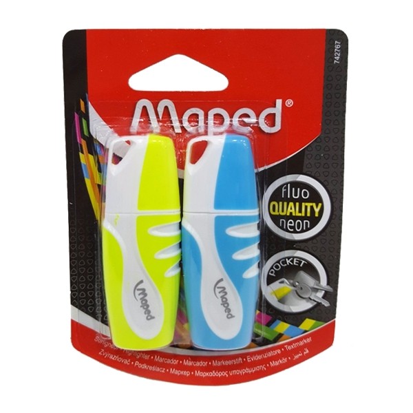 BỘ BÚT DẠ QUANG MINI X2 MAPED - VÀNG XANH