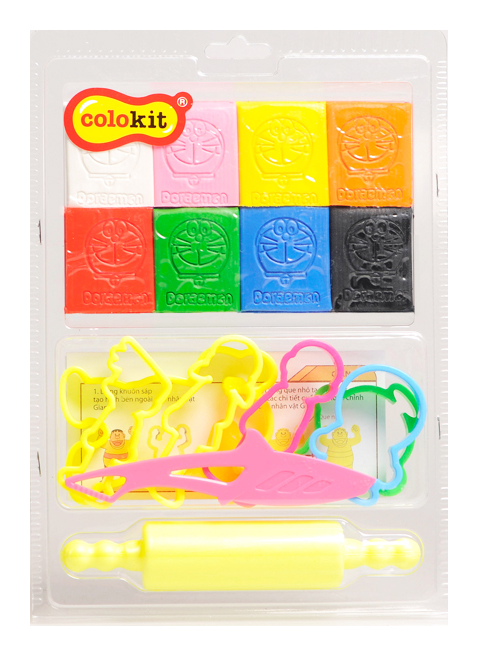 - Bộ sản phẩm bao gồm 8 màu sáp nặn, dao cắt sáp, rulo cán nặn và bộ khuôn tạo hình 6 nhân vật trong truyện Doraemon giúp các bé thỏa sức sáng tạo.