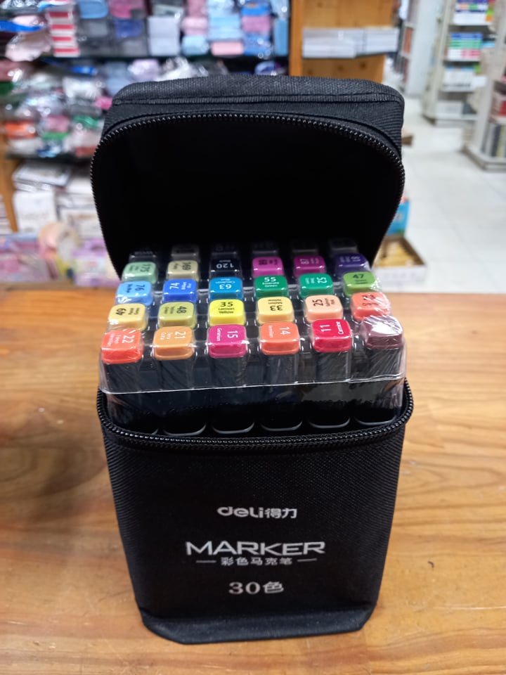 Bút màu marker chuyên nghiệp Deli kèm túi vải - 30 Màu