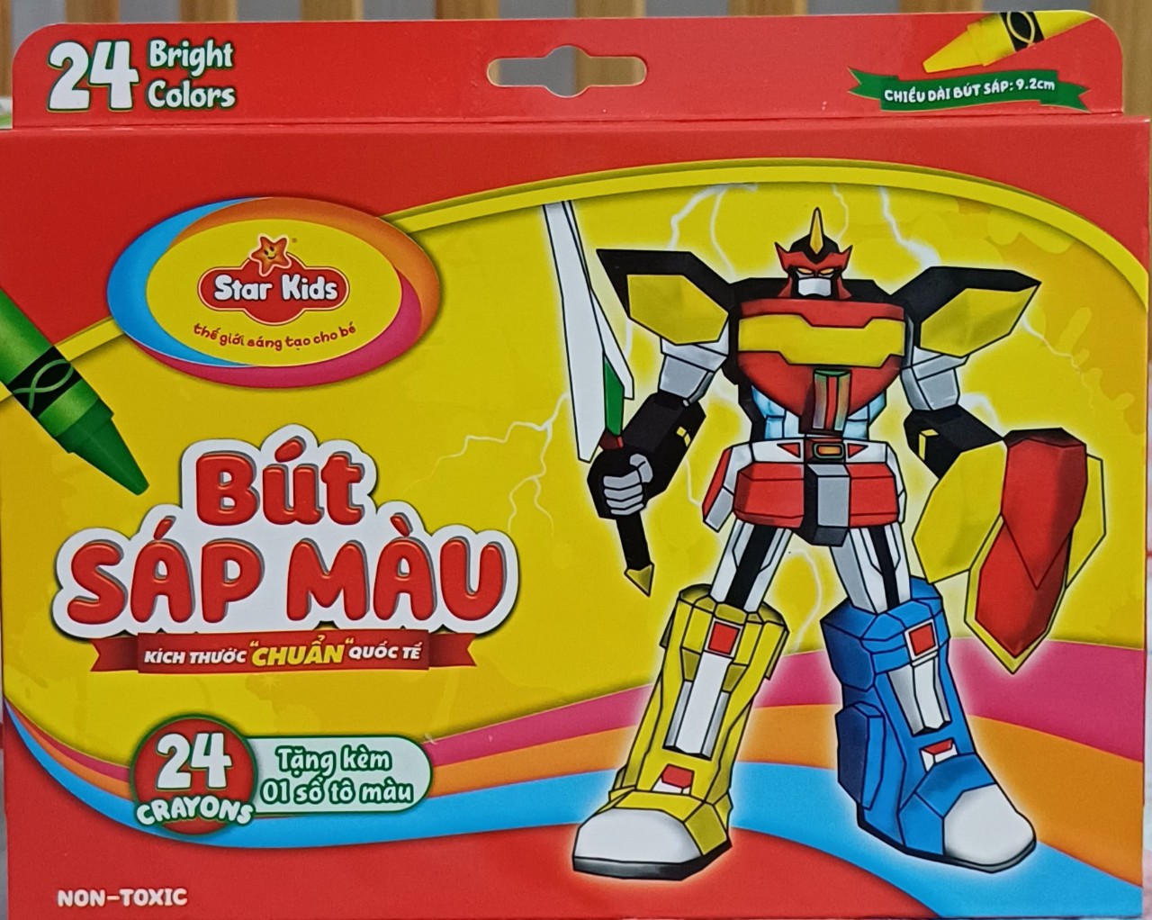 Sản phẩm gồm 24 bút sáp màu khác nhau thích hợp cho trẻ em khi bắt đầu tập tô màu.