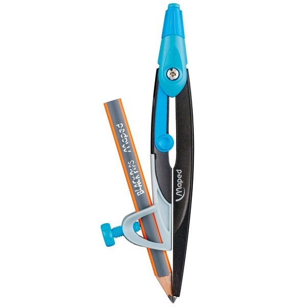 Sản phẩm được cấu tạo từ nhiều chất liệu khác nhau như: nhựa và kim loại. Chân compa cũng chính là giá đỡ đầu bút chì, bảo vệ bút chì, không lo bị gãy đầu hay lem chì. Sản phẩm sử dụng bút chì gỗ để vẽ những đường tròn.