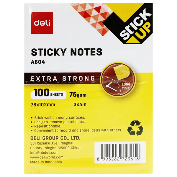 Giấy Note 76 x 102 mm 75gsm - Deli A604 - Màu Vàng (100 Tờ)