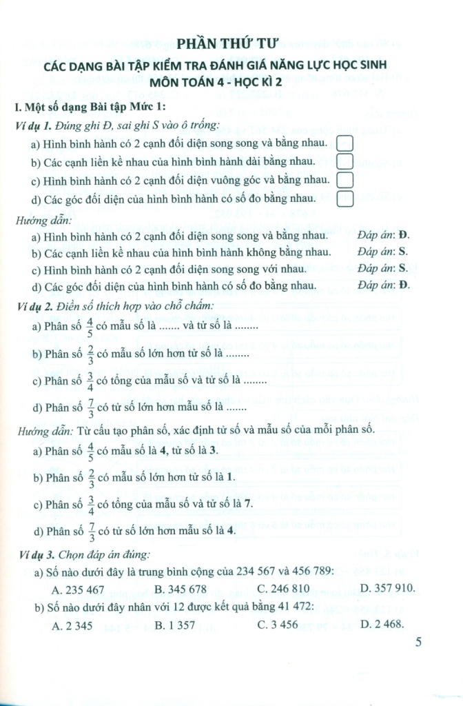 Để giúp giáo viên cũng như các bậc phụ huynh có thêm tài liệu hướng dẫn các em lớp 4 ôn tập trước khi kiểm tra định kì cuối kì và giữa kì, chúng tôi xin giới thiệu cuốn "Kiểm tra đánh giá năng lực học sinh lớp 4 môn Toán". Cuốn sách sẽ giúp các em ôn tập một cách hiệu quả, đồng thời giúp giáo viên và các bậc phụ huynh đánh giá đúng năng lực của học sinh, từ đó giúp các em điều chỉnh cách học để đạt hiệu quả cao nhất. Cuốn sách gồm 5 phần.