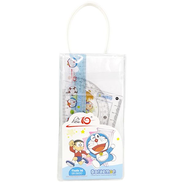 Thước bộ SR-09/DO là sản phẩm thước bộ gồm: 1 thước thẳng 15 cm, 1 thước eke 45, 1 thước eke 60, 1 thước đo góc 180.